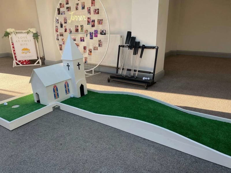 Luxury white crazy golf ideal for weddings , corporate events and parties
