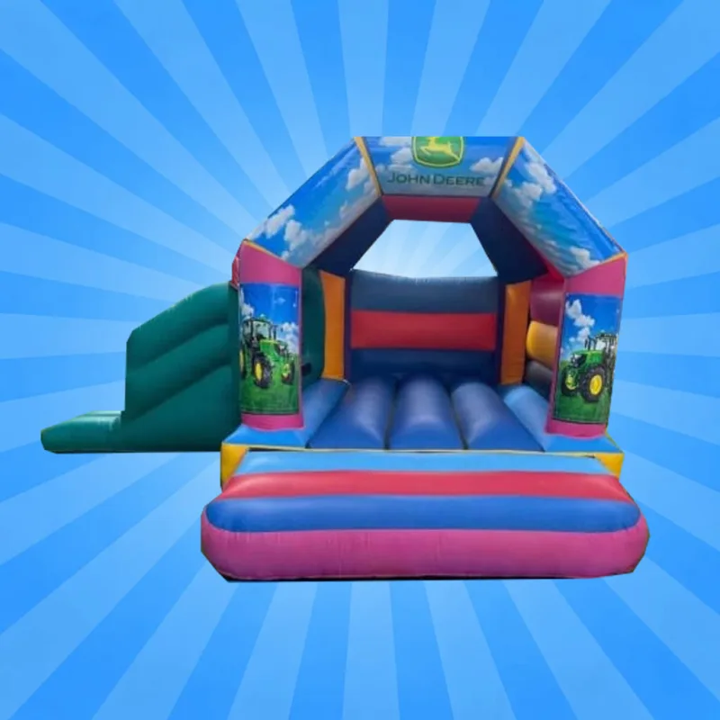 The John Deere Combi Castle is more than just a bouncy castle; it's an immersive play experience that captures the spirit of farming and outdoor adventure. The detailed artwork on the castle features familiar farmyard scenes, including tractors, barns, and animals, transporting children to a vibrant, rural world. The design is instantly recognisable, especially to young tractor enthusiasts who admire the John Deere brand.