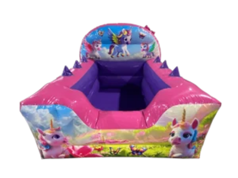 INDOOR HIRE ONLYHire our stunning 3D Unicorn bouncy castle and matching inflatable unicorn ball pool with matching play balls. Stunning set perfect for a unicorn themed party. Creating memories and a beautiful party for you children and guests.