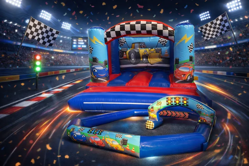 Includes Race Car Bouncy Castle, and Didi Car Race Track
